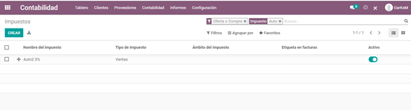 En Odoo, una autorretención en la fuente se configura como un impuesto compuesto con dos componentes: